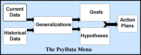 PsyData is a combination of a computer system, a computer program, and a method of assisting psychotherapy, all used in conjunction with the existing type of talk therapy currently in use. The therapist and client each have their own computer screen, keyboard, and mouse. Talk therapy proceeds as normal, and occassionally the therapist and/or client make entries into the computer. The therapist and client can also jointly look at information that was entered previously. The PsyData program organizes the information in a unique way to facilitate analysis and productive use of the information, and to facilitate the discovery of helpful new information. PsyData isn't a new method of therapy, but instead is a method of increasing the effectiveness of therapy.
